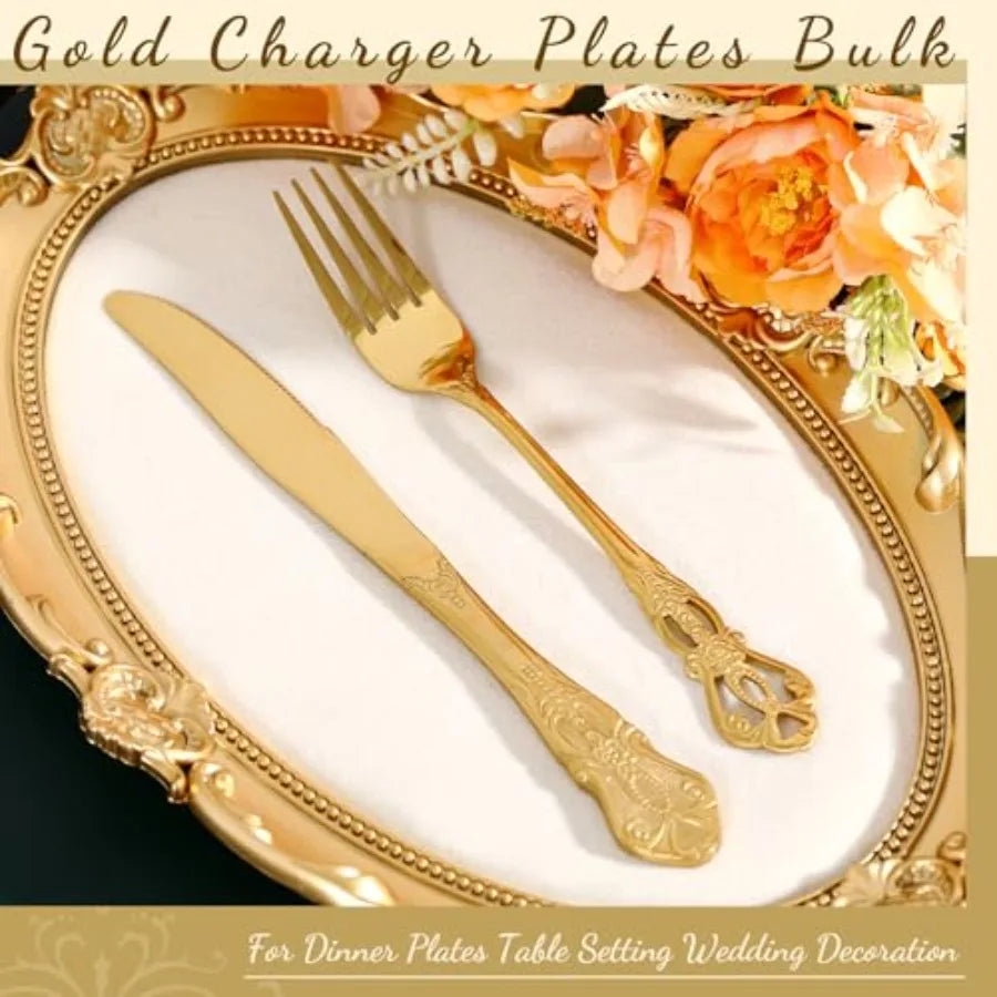 Elevate every table setting with this 100-piece gold stainless steel cutlery set, a retro royal silverware option perfect for weddings, parties, and upscale dining.